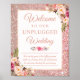 Póster Rose Gold Floral Welcome to Unplugged Wedding Sign