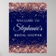 Póster Rose Gold Glitter Navy Bridal Shower Welcome