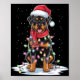 Póster Rottweiler Dog Santa Hat Christmas Tree Light Xmas