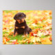 Póster Rottweiler Puppy Sentado En Hojas De Otoño