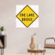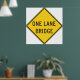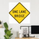 Una señal de un camino puente de un carril en negro sobre amarillo. Este diseño parece realmente efectivo en este Poster
