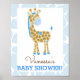 Póster Rótulo Baby Shower Blue Giraffe