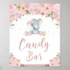 Póster Rótulo Baby Shower Candy Bar con Elefante Floral R