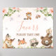 Pink Floral Woodland Animals Baby Shower Rótulo Cute carpintería con temática de bebé, símbolo de ducha con varias acuarelas y arreglos florales rosados. Ideal para alguien que busca un lindo letrero de ducha de bebé con temática de bosques para una niña.