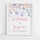 Señal de bienvenida de la ducha de bebé con mariposas.