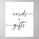 Muestra a los clientes de la ducha de bebé dónde dejar sus tarjetas y regalos con este sencillo y elegante cartel de una mesa, con un guión moderno con un corazón florido.