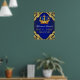 Señal de bienvenida de la ducha de bebé Príncipe con corona azul real y dorada en un hermoso fondo de remolino azul real y dorado. Este signo real de ducha de bebé se personaliza fácilmente para tu evento simplemente añadiendo el texto de tu elección en el estilo de letra que prefieras. También puede mover y redimensionar la corona según sea necesario.