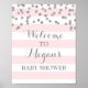 Bienvenido al poster de signos de Baby Shower con nombre personalizado en patrón de rayas blancas y rosas claras con efecto purpurina plateado, por favor tenga en cuenta que la plata es efecto fotográfico solamente.