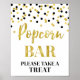 Cartel de la barra de palomitas para la ducha de bebé, la ducha de novia, la fiesta de cumpleaños o el boda con un patrón negro y dorado.