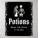 Póster Rótulo Black Gothic Halloween Skeleton Potions