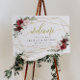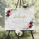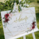 Póster Rótulo Boda de bienvenida con flores de Borgoña