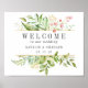 Póster Rótulo Boda de bienvenida de follaje verde floral
