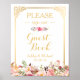Póster Rótulo Boda de Guestbook | Floral de marco dorado