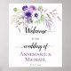¡Hágale saber a tus invitados que están en el lugar correcto! Flores acuarelas en violeta, lavanda y blanco. Si desea este diseño en otros carteles bodas, por favor envíeme un correo electrónico a shutterbug600@yahoo.com.
