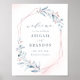 Póster Rótulo Boda geométrico de la vegetación azul de or