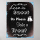 "El amor es dulce, así que "Take a Treat", boda negro firma un falso cartel de pizarra para una barra de dulces en un boda o una ducha de bebé.