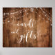 Este conjunto rústico y elegante de diseños presenta las tendencias de diseño más populares combinadas de forma fresca. Con un rico fondo de madera marrón y dos cuerdas de acentos brillantes de luz, he combinado una hermosa fuente moderna de escritura para representar gráficos que representan palabras clave y frases en el conjunto de diseño. En el diseño de este cartel, el texto de caligrafía dice "tarjetas y regalos". Las piezas de esta colección son ideales para un elegante evento de celebraciones o celebraciones de bodas en un país o casual. Todas las capas se desbloquean para permitirle el mayor control que desee. ¡Estoy feliz de ayudar con la personalización! // 19 //