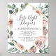 Dé a sus huéspedes una dirección encantadora con nuestro boho rosa pañales de noche, señal de actividad de la ducha de bebé, con eucalipto de color de agua y guirnaldas polvorientas de color rosa y elegante letra de estilo manuscrito.