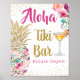 Póster Rótulo de bar Aloha Tropical Pineapple Floral Rosa