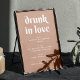 Trae una cálida elegancia a tu recepción con este cartel de bar boda con el lúdico titular "ebrio enamorado" sobre un suave fondo de color durazno de melocotón. El diseño minimalista combina tipografía audaz con un tono neutro romántico, lo que lo hace perfecto para estilos bodas modernos, boho o atemporales. Enumera claramente la cerveza, el vino, los licores, etc. mientras que la decoración de su bar es de moda. Disponible como signo impreso o descarga digital para imprimir fácilmente en casa.