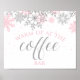 Invierno Terraza cálida en el Rótulo Café Bar con copos de nieve rosa y purpurina plateado.