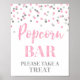 Cartel de la barra de palomitas para la ducha de bebé, la ducha de novia, la fiesta de cumpleaños o el boda en tonos rosa y plateado. Tenga en cuenta que el efecto purpurina es sólo efecto fotográfico.