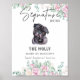 El encantador cartel de la bebida de la marca Pug está decorado con un bonito diseño de mascota floral al estilo acuático, perfecto para un boda saturado de tonos neutros. Es una forma atractiva de acentuar el cóctel, la comida o la mesa de postres. Personalice el cartel de la barra del boda con el nombre del mascota y los detalles de la bebida.