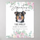 El encantador letrero de la firma inglesa del perro Pastor presenta un hermoso diseño de mascota floral al estilo acuático, perfecto para un boda saturado de tonos neutros. Es una forma atractiva de acentuar el cóctel, la comida o la mesa de postres. Personalice el cartel de la barra del boda con el nombre del mascota y los detalles de la bebida.
