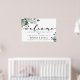 Moderno, sencillo y elegante, con caligrafía "bienvenido" y signo de boda follórico eucaliptos verde.