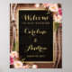 Póster Rótulo De Bienvenida De La Madera Rústica Y Floral