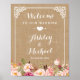 Póster Rótulo de bienvenida rustico Burlap Floral