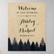 Póster Rótulo de Boda de Invierno Rústico Pine Trees Kraf