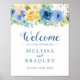 Rótulo de casamiento de jardín botánico floral azul amarillo
