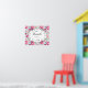 Un poster con un cartel personalizado de cocina con su nombre. También podría reemplazar la cocina para decir panadería o caramelos de compras etc... El marco es de estilo francés y elegante. Ilustrado con donuts rosados glaseados con rociadores. Bocadillos de agua dulce de color rosa y azul con rosettes y fresas encima. Algunos macarones pasteleros franceses de color rosa pastel y pequeños botones de bonbon de caramelo rosa también decoran este patrón lleno de dulces.
