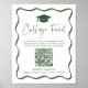 Añada un elemento divertido y elegante a su fiesta de graduación con este signo de código QR de la graduación del Modern Wavy Border College Fund. Con un ilustracion de tope de graduación en la parte superior, "College Fund" se muestra en un vibrante guión escrito a mano verde, rodeado por un borde ondulado verde. Personalice al poster de graduación con el texto de su personalizado y un enlace a su servicio de pago preferido, lo que facilita a los huéspedes contribuir a su futura educación. Perfecto para mostrar en su fiesta de graduación de la escuela secundaria, este cartel es una excelente manera de cobrar contribuciones al estilo para su fondo universitario!