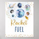 Póster Rótulo de cumpleaños del espacio Rocket Fuel Blue