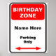 Rótulo de estacionamiento de zonas de cumpleaños personalizado