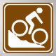 Señal internacional de carreteras y autopistas asesorando sobre instalaciones recreativas, específicamente: senderos BMX.