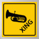 Señal de advertencia de carreteras y autopistas de estilo internacional que aconseja la actividad del eufonio.