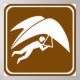 Señal internacional de carreteras y autopistas asesorando sobre instalaciones recreativas, específicamente: ala delta.
