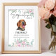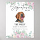 El encantador letrero de la firma de perro de la hebilla serbia presenta un hermoso diseño de mascota floral al estilo de acuarela, perfecto para un boda saturado en tonos neutros. Es una forma atractiva de acentuar el cóctel, la comida o la mesa de postres. Personalice el cartel de la barra del boda con el nombre del mascota y los detalles de la bebida.