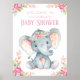 Chica elefante ducha de bebé signo de bienvenida con adorable acuarela bebé elefante sobre un fondo floral de color bonito. Este adorable cartel de ducha de elefantes también puede ser reducido para el uso de la mesa.