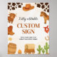 Añada un toque rústico a su celebración con este Rótulo de fiesta de cumpleaños de Rodeo Cowboy Occidental. Diseñado con gorras de vaquero, botas y tipos de letra occidentales, es perfecto para etiquetar dulces, actividades o mesas de regalo en la salvaje bash de cumpleaños oeste de tu pequeño guerrero.