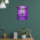 Impresión de señal de la recepción de bodas de Halloween (vertical) con araña negra de miedo y texto negro de personalizable - puedes agregar el nombre de la novia y del novio y fecha boda, impresa en fondo morado. Las dimensiones de la huella de signo (poster) son de 18 pulgadas por 24 pulgadas.