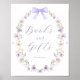 Cartel de libros y regalos con flores silvestres acuáticas y arco violeta. Personaliza con tu propio texto. Colección coincidente en la tienda Adore Paper Co. Zazzle.