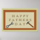 Este impresionante poster cuenta con una imagen de arte digital de un escritorio de madera con un grupo de letras de madera que deletrean las palabras Feliz Día de los Padres. Cada una de las cartas tiene una serie de clavos en ella. También hay una hilera a un lado de la señal y un martillo al otro lado. Un gran diseño para cualquier papá que ame hacer cosas.