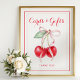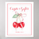 Agrega un toque dulce a tu ducha de bebé con este signo de tarjetas y regalos con tema de cerezo. Con cerezas acuáticas atadas con una cinta rosada, este diseño guía a los huéspedes dónde colocar sus cartas y regalos. Un detalle encantador y práctico para tu tema de la ducha de cerezo.