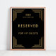 Eleva tu evento con este cartel reservado en blanco y negro y dorado que incluye elegantes líneas Art Déco, negrita "Reservado para invitados VIP" y espacio para añadir el logo de tu personalizado. Perfecto para fiestas corporativos, cenas de gala, recepciones de bodas, banquetes de vacaciones o eventos exclusivos, este cartel le ayuda a ahorrar asientos con estilo. Un diseño sofisticado que combina lujo moderno con elegancia intemporal, lo que lo hace ideal para mesas VIP y zonas de estar reservadas.