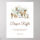 Watercolor Animals Woodland Baby Shower Diaper Raffle Rótulo Poster. Elementos coincidentes disponibles.