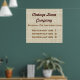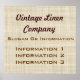 Signo de impresión poster fresco profesional y elegante con un estilo retro de tela de lino vintage. Este signo poster coincide con las populares tarjetas de visita. Tonos marrones claros y beige con franjas sutiles. Fácil de añadir la información de su propio personalizado en los tipos de letra elegantes mostrados o cambiar fácilmente el estilo y el color del tipo de letra si lo desea. Tenga en cuenta que este diseño realista está impreso en papel, no es ropa de cama real. Se muestra un gran signo de tamaño de 32" x 30" que también se puede comprar a cualquier tamaño menor si se desea.